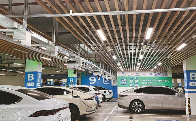 图为苏州市政府地下“全电共享”充电机器人充电服务区。倪敏 摄
