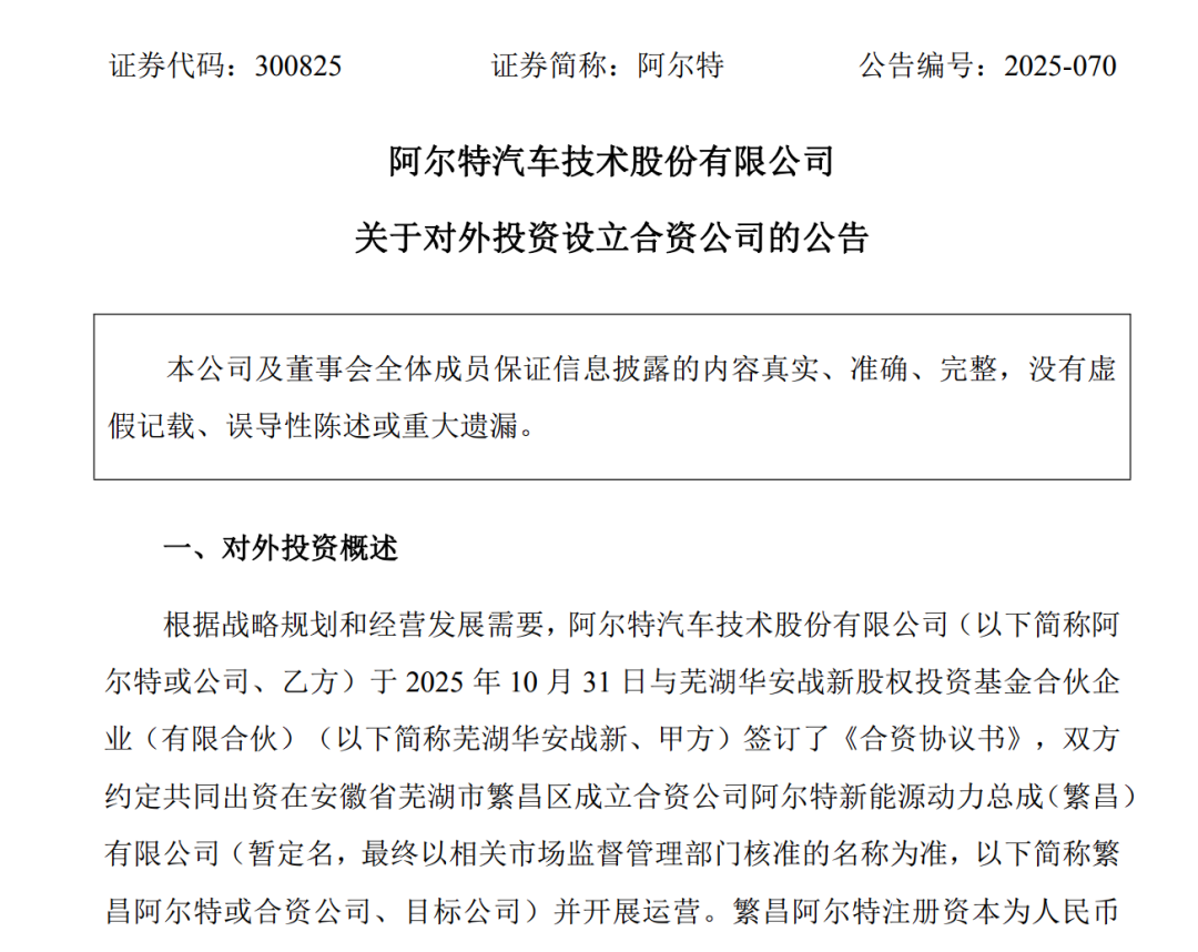 芜湖新能源汽车产业发展再添新动力。近日,国内汽车设计研发领军者——阿尔特汽车技术股份有限公司与芜湖华安战新股权投资基金合伙企业(有限合伙)正式签署合资协议,双方将共同出资,在芜湖设立阿尔特新能源动力总成(繁昌)有限公司,聚焦纯电动及混合动力总成系统的研发与规模化生产,致力于构建行业领先的新能源汽车核心零部件供应链体系。 阿尔特汽车参加广州展会 合资公司注册资本达6.72亿元,未来将重点推进电动化、智能化动力系统技术的创新突破,为全球范围内的汽车制造商提供更具市场竞争力的产品与系统解决方案。 阿尔特汽车技术股份有限公司是中国汽车设计研发领域的领军者。公司成立于2007年,总部位于北京,是国家首批高新技术企业、中国首家上市的独立汽车设计公司。凭借其深厚的整车研发、核心零部件研发制造及新能源汽车技术积累,阿尔特已为国内外80余家汽车企业提供服务,成功开发超过500款车型。近年来,阿尔特正加速从技术输出向‘技术+供应链’的出海战略模式转型。 芜湖华安战新股权投资基金合伙企业(有限合伙)是一支专注于新能源领域的产业投资基金,成立于2023年7月,总规模达10亿元。该基金由安徽省碳中和基金、芜湖产业投资基金等多方机构联合设立,其投资方向围绕绿色能源、环保、能源科技、碳科技等国家战略性新兴产业领域。 对于此次落子芜湖,阿尔特官方给予了高度评价:芜湖是安徽省重要的汽车产业基地,已形成了以奇瑞汽车为龙头,集整车制造、零部件配套、研发设计、检测试验于一体的汽车产业体系,呈现出“龙头带动强、本地化配套率高、研发与资本投入足、出海与港口物流高效”的优势,是长三角地区新能源汽车产业链的重要一环。这一战略合作标志着阿尔特在新能源汽车核心零部件领域取得重要突破,也将为长三角新能源汽车产业集群发展注入新动能。 |