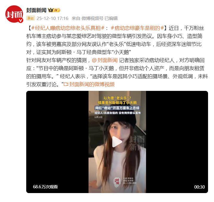 据12月10日报道,机车网红痞幼在一档恋爱综艺里的座驾,可算是闹了个大乌龙。画面里那辆粉嫩小巧、造型简约的微型车,被男嘉宾和围观网友一眼鉴定为“老头乐”,瞬间引发一片调侃。谁承想,这波眼力测试大众集体翻车——经资深车迷拿着放大镜对比细节,这哪是什么低速电动车,分明是阿斯顿・马丁旗下那款经典的微型车“小天鹅”! 节目里,痞幼开着这辆粉色小车出场,画风与往常的酷炫机车形象反差巨大。也难怪大家看走眼,“小天鹅”车身迷你、设计复古,在不懂行的人看来,跟路上跑的“老头乐”确有几分神似。这场面,堪称大型“不识货”现场。 眼看话题越炒越热,痞幼团队坐不住了。其经纪人向媒体独家回应,来了个“双重澄清”:第一,这车确实是阿斯顿・马丁小天鹅,如假包换;第二,这车绝非痞幼个人所有,只是节目组为了拍摄需要,特意向朋友租赁来的。经纪人解释,选这车纯粹是看中它小巧不占地方、外观低调不抢镜,能更好适配综艺拍摄场景,压根没想到会引发这么一场关于“是豪车还是代步车”的识别大战。 这波回应,让焦点又回到了车本身。阿斯顿・马丁“小天鹅”是何方神圣?说起来,它可是汽车界一个特别的存在。这款车诞生于2010年左右,当初并非公开售卖,而是作为购买品牌旗下某些顶级超跑的“赠品”或配套车型推出,因此被戏称为“最便宜的阿斯顿・马丁”。也正因这种特殊的发售方式,它在全球范围内产量极低,在国内更是稀有物种,路上难得一见,辨识度低也就不足为奇了。 一场由综艺引发的“车辆识别危机”,就这样以“豪车被误认”的戏剧性反转收场。它既暴露了这款小众经典车“曲高和寡”的现状,也成了网红形象与实物认知之间产生错位的一个趣味注脚。下次再看到不起眼的小车,或许得先留个心眼:这该不会又是哪个深藏不露的“贵族”吧? 编辑:文小娱 |