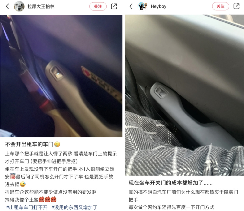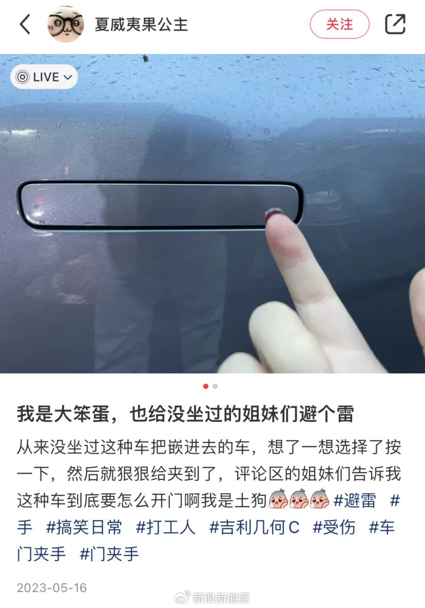 随着北方城市陆续“正式入冬”,开始飘雪,又有一批新能源车的隐藏式门把手要被冻住了。 有因打不开车门把手,导致迟到被扣全勤奖的;有努力铲了十分钟门把手上的雪和冰,终于打开了车门的;还有网友表示自己为了打开门把手,特意带了一壶1.5升的热水下楼,连冲带抠地打开了车门。 今年冬天,已经有网友汽车隐藏式车把手被冻住打不开|图源:小红书截图,已获授权实际上,在平常,隐藏式的门把手还“暗藏危险”,一不小心就可能被它夹住手指。 按车门被夹|图源:小红书截图(已获授权)然而,这种隐藏式门把手却是新能源汽车的心头好。 “甲子光年”曾整理发现,在10万元-30万元级别的新能源汽车上,几乎遍布隐藏式门把手。当前国产新能源汽车品牌中,蔚来、小鹏、理想、问界、长安深蓝、东风岚图等全系在售车型均配备了隐藏式门把手;哪吒、广汽埃安、比亚迪、零跑的大部分车型也配备了隐藏式门把手。 蔚来ET7行政版、理想L7、小鹏P7i均配备隐形式门把手|图源:车企官网截图为什么新能源汽车这么热衷于隐藏式门把手? 实际上,首先使用隐藏式门把手设计的并不是新能源汽车,而是为了减少风阻的超级跑车。 世界上第一款使用隐藏式门把手的是奔驰300SL,作为追求极致速度的超级跑车,它的最高时速达到了 263km/h。该车型通过隐藏式门把手,配合上低矮的车身和流线型的设计,试图在竞速大赛中降低风阻,提升车辆性能,降低油耗。 1956年奔驰300SL|图源:视觉中国 随后,兰博基尼 Countach、迈凯伦 F1 以及柯尼塞格 Agera RS 等超级跑车都使用过隐藏式门把手的设计。 隐藏式门把手的概念,也和高档、豪华汽车紧密联系在一起。 为了塑造其高档定位,后来出现的新能源汽车也开始沿用隐藏式门把手设计。 2012年,特斯拉在Model S(租车电话:15011103926)车型上引入隐藏式门把手,即与车体齐平的门把手方案。该设计后被应用到特斯拉所有车型中,并凭借特斯拉在全球的影响力带动了新能源汽车圈的设计风向。 目前的特斯拉Model S paid版|图源:特斯拉官网就目前的新能源汽车来说,通过隐藏式门把手的设计方案,在视觉上和体验上为车辆增添了未来感、科技感。 目前市面上常见的隐藏式门把手分为按压式和电控弹出式。 如特斯拉 Model Y(租车电话:15011103926)就是按压式,需要按住门把手一端,让另一端翘起再开门。 Model S 则采用了电控弹出式隐藏门把手,用户可以选择自动感应方式,携带手机钥匙或遥控钥匙靠近驾驶位一侧时,门把手将自动弹出。 一些车型甚至没有门把手,直接替换为电动感应门,科技感拉满。 极越01无把手电动感应门|图片来源:极越官网这与现代经济中占据重要一席的体验经济有关。相比更注重产品功能和价值的传统经济模式,体验经济则更加注重满足顾客个性化需求、推动顾客参与体验。 隐藏式门把手通过“车主靠近车辆就自动弹出”的功能,增强了车主与车辆的互动,为车主提供充足的使用仪式感和与众不同的用车体验。 一方面,这种体验创造出有别于传统汽车的使用记忆点,增强了消费者对新能源汽车的“智能化、未来感”的认知,从而与传统汽车划明界限,巩固“智能汽车”形象。 另一方面,隐藏式门把手需要用户接近车辆才会激活,使用户成为互动的一部分,用户不再是高科技产品——新能源汽车的观察者、局外人,而是充满科技感开门方式的主导者。这种互动为用户带来心理上的高级感,还建立起用户的使用习惯,加深用户对品牌的情感连接和忠诚度。 就像迪士尼乐园中与游客互动的角色扮演者,虽然无法给用户带来实际的实用价值,但它们通过创造独特的氛围和情感连接,极大地丰富用户体验,创造独特的记忆点,提高品牌的吸引力。 迪士尼玲娜贝儿在花车上与游客互动|图源:视频截图另外,不少车企宣传隐藏式门把手时,经常会提到“减少风阻,降低能耗、增加续航 ”的功能。 印度韦洛尔理工大学Gautham Ramchandran等学者通过模拟实验发现,在风速为15米/秒的环境下,拉式门把手(Pull type,我国目前大部分家用汽车主要采用的门把手形式)导致阻力系数增加了0.0003,增加的空气阻力比例约为0.123%。 由于门把手的存在而增加的总风阻系数甲子光年分析师张麟进一步解释道:在40km/h的速度下,隐藏式的门把手在空气阻力上做出的优化,能让电动汽车降低约0.005kWh/100km的能耗;而当速度提升至80km/h时,这个数字会升至0.12kWh/100km。 降低能耗最直接的功效就是带来续航能力的提升。广汽埃安内部人士就曾在接受成都商报红星资本局采访时表示,隐藏式门把手能让车辆提升5-10km续航。 也就是说,隐藏式门把手确实能够起到减少空气阻力,降低电动汽车的能源消耗,增加车辆续航的作用。 但是这个数据是否具有明显的实际应用价值呢? 2024年3月,汽车之家公布对38款纯电新能源汽车的续航能力测试报告。结果显示,在气温接近电池的最佳工作温度,且和我们空调预设温度也非常接近的环境下,纯电新能源汽车能耗为11.28-18.52kWh/100km,实测续航在240.2-713.8km之间。 海南温区纯电续航成绩受测汽车中,除了奥迪RS e-tron GT(租车电话:15011103926)、五菱缤果、宝骏悦也之外,全部采用与车身齐平的门把手方案。根据前文研究,就算给它们安上传统的拉式门把手,所增加的能耗和降低的续航,还不到目前数据的零头,车主在驾驶过程中几乎无法感觉到。 隐藏式门把手的安全隐患 