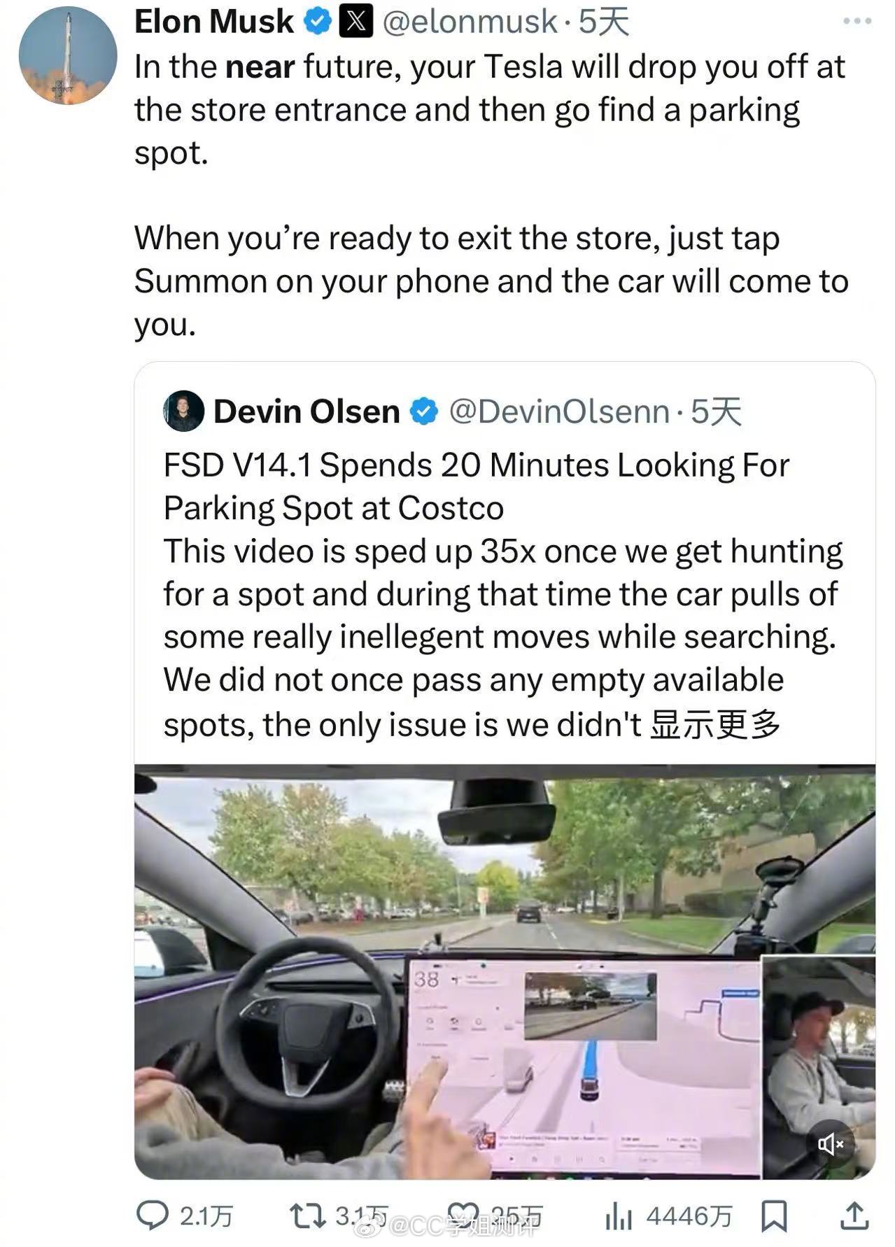 "Banish"自动泊车堪称逆天:人到门口直接下车,车子自己找车位停好,需要时一召唤就自己开回来接驾。马斯克又画饼了,但这功能真不是吹,需要FSD系统疯狂学习各种停车场景。虽然现在还没上线,但看这架势,特斯拉这是要自己卷自己啊!