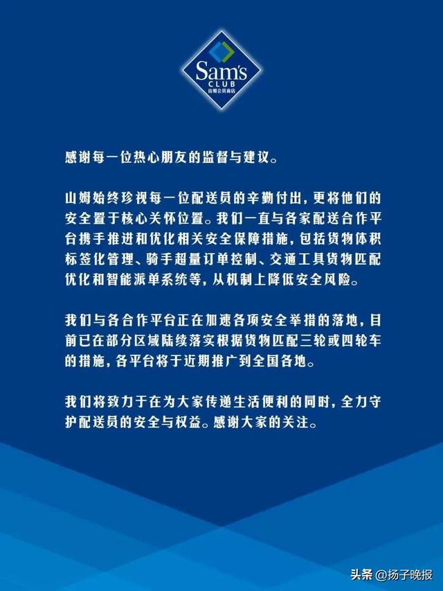 多地网友日前在社交平台发文称,山姆超市配送员驾驶的电动车上挂满货物,疑似严重超载,质疑山姆配送方式不合理。 网友在社交平台发文称,山姆超市配送员货多车小,带来安全隐患。 网络图10月22日,澎湃新闻记者从山姆超市获悉,该企业目前已在部分区域陆续落实根据货物匹配三轮或四轮车的措施,各平台将于近期推广到全国各地。该企业称,关于上海地区配送车辆的推广情况,暂时没有可以分享的信息,但有关工作已经在与合作伙伴推进中。 当天,京东秒送回应,京东秒送正与山姆共同加速多项安全举措的落地,增加三轮及四轮等专用车辆以适配大体积订单,全力守护骑士配送安全。 美团表示,美团已与山姆联手上线多项配送保障措施。目前,专用四轮配送汽车已在试点之中,将陆续惠及更多配送员。此外,美团还将完善订单分派机制,为大件商品建立识别标签,与山姆合作测试智能配送系统,确保配送员可以接到适合自身配送情况的货物。 美团称,专用四轮车配送汽车正在试点。 京东秒送称,将增加三轮及四轮等专用车辆以适配大体积订单。 今年10月,上海、浙江等地网友拍摄到山姆配送员电动车载货严重超载,比如整箱矿泉水叠高、车把挂满粮油,车身倾斜且遮挡后视镜,影响行驶安全。据新黄河报道,近期山姆在天津、武汉、长沙等地已与顺丰、京东合作,用电动三轮车的方式运输大件货物。 《中华人民共和国道路交通安全法实施条例》第七十一条对非机动车载物有明确规定:自行车、电动自行车、残疾人机动轮椅车载物,高度从地面起不得超过 1.5 米,宽度左右各不得超出车把 0.15 米,长度前端不得超出车轮,后端不得超出车身 0.3 米。 山姆超市提供的通知。 来源:澎湃新闻 |