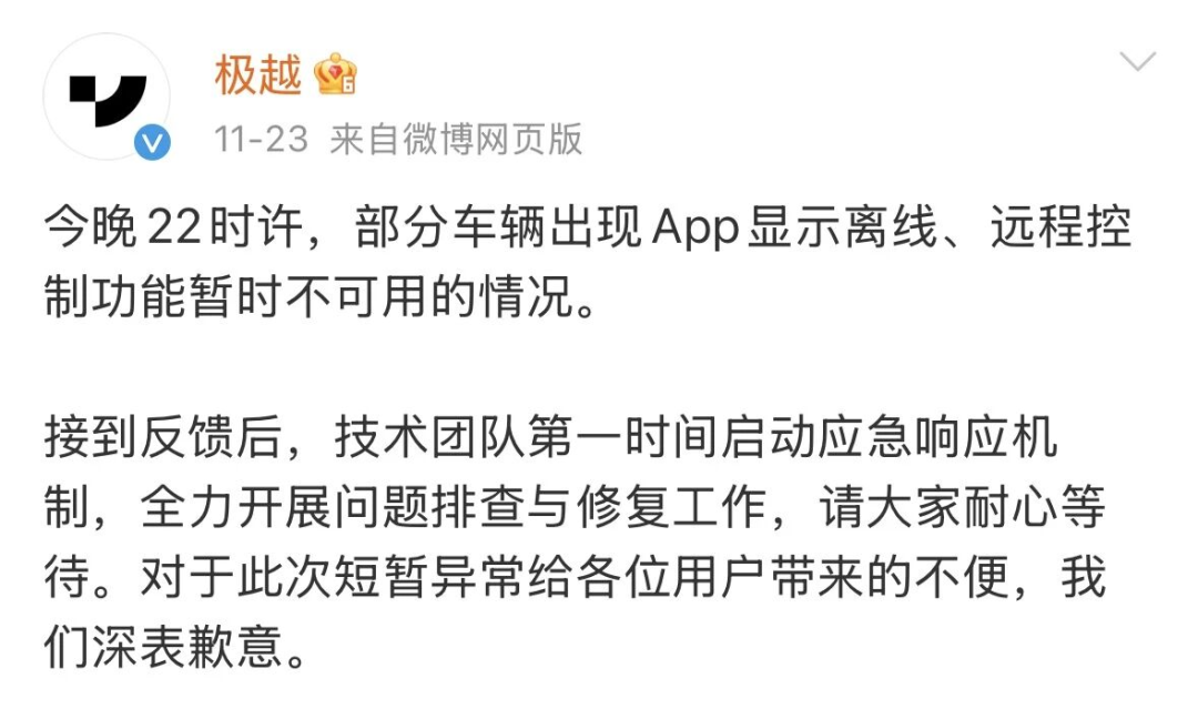 更关键的考验来自用户信任。就在预重整公告发布前两天,极越汽车 APP 突发大规模离线故障,远程控制、解锁等核心功能失效,而这已是 2025 年 7 月以来的第二次同类故障。