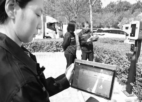 新能源汽车充电桩的计量性能与广大车主的切身利益密切相关。4月17日,北京市通州区市场监管局工作人员来到台湖公园停车场,对新能源汽车充电桩开展检定。本次检定的是前期发现计量误差值超过2%的充电桩,涉及7个点位30个充电桩。对于检定合格的充电桩,工作人员在醒目位置加贴合格标识并出具检定证书。裴新军 本报记者孟刚摄影报道