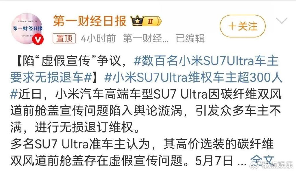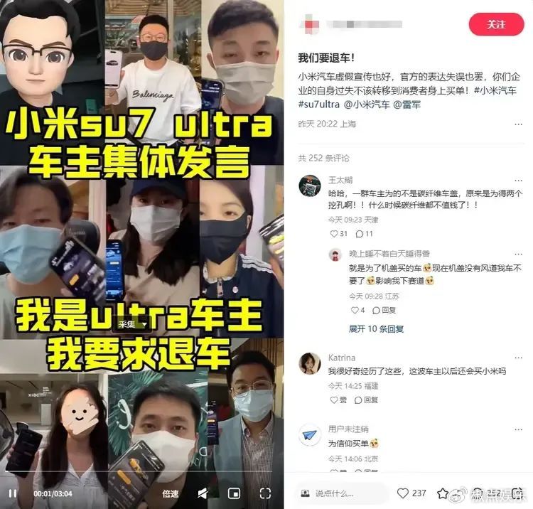 最近,小米汽车可算是被推到了舆论的风口浪尖,那热度,比三伏天的太阳还 “火辣”。 300多名小米 SU7 ultra 的车主气势汹汹,一致要求退车,这阵仗,就差没把小米的大门给“踏平”了。而雷军呢,选择了沉默,可这沉默,在车主们听来,却如同 “震耳欲聋” 的雷声,让人心里直发慌。 要知道,这次的“高价前舱盖事件”,那可真是闹得沸沸扬扬,堪称小米造车以来最大的危机,比起之前的车祸事件,那棘手程度有过之而无不及。为啥这么说呢? 这次事件,直接把小米汽车推到了 “虚假宣传、坑骗用户” 的风口浪尖上。你想想,车主们花了整整 4.2万的高价,选配了那个被吹得神乎其神的高科技机舱盖,满心期待着能收获超凡体验,结果呢? 把机舱盖拆开一看,好家伙,里面空荡荡的,啥高科技玩意儿都没有,之前宣传得天花乱坠的各种功能,通通成了泡影,这不就是明摆着“挂羊头卖狗肉” 嘛! 车辆出车祸这种事,虽说挺糟心,但毕竟路上车来车往,路况复杂,意外难以避免,哪家车企敢拍着胸脯说自家车从没出过事故?而且这种事也不是小米能完全掌控的,所以雷军要是想辩解,还能找点理由,说责任不全在自己。可这次机舱盖事件,性质完全不同。 这么离谱的事儿,实在让人难以相信,雷军一开始就打算用这种 “绣花枕头” 般的配件,跟车主们要4.2万的高价。这就好比你去买个号称装满宝藏的盒子,花了大价钱打开一看,里面只有几根稻草,搁谁不得气炸了呀! 两天前,雷军自己也承认,过去一个多月是他十几年来最艰难的一段时间。可面对车主们汹涌如潮的退车诉求,他却选择了持续沉默。这一沉默可不得了,再次让车主们的心拔凉拔凉的。 就拿近2个月前的安徽车毁人亡事故来说吧,雷军当时也是一再沉默,结果白白错过了公关的最佳时机。这就像下棋,一步错步步错,后面只能陷入被动局面,紧接着就又闹出这次天价机舱盖事件,可谓是“屋漏偏逢连夜雨”。 咱再仔细捋捋这事儿,雷军肯定不是想当缩头乌龟”逃避责任,他心里也清楚,这次的事情太棘手,怎么做都很难让所有人满意。但问题的关键,还是出在小米自身。 首先,这300多车主的退车诉求,就像一座大山横在小米面前。退吧,不是说小米没这个经济实力,而是一旦开了这个先例,就好比打开了“潘多拉魔盒”,后面其他车主心里会怎么想? 大家会觉得小米的产品不靠谱,说不定都纷纷要求退车,到时候人心惶惶,小米汽车这 “队伍” 可就真的没法带了,品牌声誉也会一落千丈。 可要是不退呢,这些车主也不是吃素的,他们觉得自己被忽悠了,花了冤枉钱,肯定不会善罢甘休。目前已经有车主表示,要联合起来,采取法律手段维权。 要是真闹到法庭上,小米就算有理,这官司打下来,也得耗费大量的人力、物力和财力,更别说还不一定能胜诉了。而且一旦败诉,那对小米的打击,简直是毁灭性的,以后谁还敢买小米汽车啊! 再看看小米给出的补偿方案,对于未交付的订单,可以免费改配为铝制前舱盖;对于已提车和锁单用户,赠送2万积分(价值2000元)。这方案一出来,车主们可不买账。 有的车主吐槽说:“我本来就是冲着那个高科技机舱盖才买的车,现在你让我改配铝制的,那我买车的意义都没了。而且这2万积分,跟我花的 4.2 万比起来,简直就是九牛一毛,打发叫花子呢!” 还有车主直言:“小米这是在敷衍我们,根本没有拿出解决问题的诚意。” 从这次事件,也能看出一些深层次的问题。如今的汽车市场,竞争那叫一个激烈,各大车企都在拼命宣传自己的产品,各种高科技概念层出不穷。但宣传归宣传,可不能脱离实际,不能把消费者当“冤大头”。 像小米这次,把一个前舱盖吹得神乎其神,结果却货不对板,这无疑是在消耗消费者的信任。要知道,信任这东西,建立起来难如登天,可毁掉它,却只在一瞬间。 雷军啊雷军,你可得好好掂量掂量了。是时候站出来,给车主们一个交代,给公众一个说法了。再这么沉默下去,小米汽车这好不容易积攒起来的口碑,可就要彻底“翻车”啦! 广大消费者都在看着呢,就盼着小米能拿出点诚意,妥善解决这次危机,重新赢回大家的信任。不然,这小米汽车在市场上的未来,可就真的悬啦! |