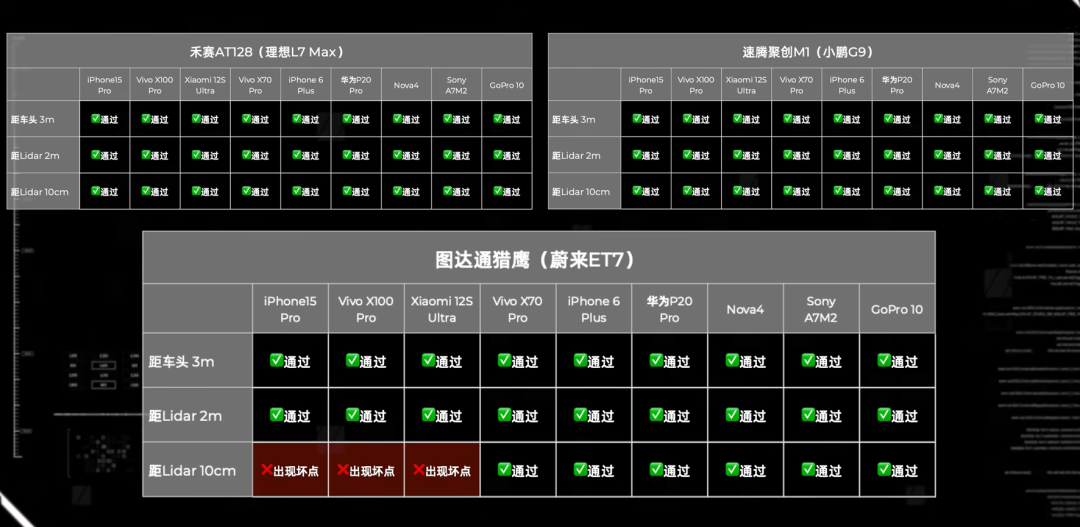 来源:Vista看天下 最近脖子哥在刷国外论坛的时候,看到了歪果仁正惊叹于激光雷达的破坏力。 一位车主正在检修车间拍摄自己的沃尔沃 Ex90,然后在拍到激光雷达之后,手机屏幕里开始出现一些紫色的 “星星”。 看得出来,车主当时还不清楚发生了什么事,甚至在来来回回调整焦距。 但演唱会去得多的差友应该已经知道了,这是激光烧坏了镜头,得大修了。 其实也不只是国外,同样的事情我们这边也有发生,一位蔚来 ET7 车主就曾经把自己的手机烧出 “十字架”,而问界 M7 的激光雷达更是直接把停车场的监控干成雪花屏。 小小的激光雷达竟然能造成如此大的破坏,什么光棱坦克啊?刚买手机的我不淡定了。 问题是,咱们这些年拍过那么多车,也没见手机出过事,到底啥情况才会被烧? 为了还没捂热的新手机,也为了这肉眼不可见的车载激光对人眼到底有没有潜在的危害,脖子哥跑去查了查资料,得到的答案是: 手机镜头有可能被烧坏,但概率很低,人眼更是不用担心了。 咱们先来看看汽车激光雷达是怎么工作的。 一般来说,激光雷达会不停的对外发射激光脉冲,然后通过雷达里面的接收器和信息处理系统,测量脉冲反射回来的时间和强度(回波),算出物体的距离、形状。 发出的激光也不是连续的,而是以纳秒(十亿分之一秒)级别不停打点,车企发布会上常说的点云就是这么个原理。 至于 128、192 线的雷达,则是指它们能同时射出多少道光线,线数越多精度就越高。 在这么个精度下,一般的车载激光雷达会持续扫描前方水平 120°,垂直 25° 数百米的区域。 这么密的激光射线,手机镜头想不接触到都难。 当激光射到手机镜头的时候,它会穿过镜头感光元件的微透镜,通过光电二极管产生光电效应。 这个时候,激光会逐步烧毁 CMOS 的微透镜、拜尔滤镜等各个部件,最后就是直接烧掉布线层。我们见到的损伤也从手机屏幕里的一个点、到线、再到整个面。 但是呢,咱们不能抛开剂量谈危害嘛,多大功率的激光才能造成永久性损伤呢? 中国光学期刊上曾经讨论过这个问题,研究人员用 532nm 和 1064nm 两个波长的激光对 CMOS 进行了纳秒激光损伤实验。 得出的结果是,面对 532nm 的激光,当能量密度为 28.95 mJ/cm²,CMOS 会出现点损伤,而 1064nm 则是升到 40.79 mJ/cm²。 这是什么概念呢? 首先,现在车载激光雷达普遍是 905nm 和 1550nm 两个波长。根据上面的试验结果,波长越大,烧坏 CMOS 需要的能量就越多。 而专做 905nm 激光雷达的禾赛曾经透露过一个参数,在距离激光雷达 10cm 的位置,功率密度大概是 0.0004 W/cm²。 不过禾赛的工程师没有透露时间数据,假设是 1 秒的话,那单位换算之后能量密度只有 0.4 mJ/cm²。 这。。。实在是有点太小了,相当于你拿着手机上去想拍多就拍多久。 为此,脖子哥求证了一位激光雷达行业的老哥,他则表示摄像头面对激光雷达还是有可能受损。不过目前业内都会做 Class 1 的人眼安全认证,采用的标准为单脉冲能量均小于 8mJ/cm²,起码不用担心眼睛受损。 不过老哥公司做的是 1550nm 波长的激光雷达,所以脖子哥当时就猜测波长应该与损伤摄像头相关。 而事实也确实如此,根据影视飓风以及绿芯频道的实测,使用 1550nm 的蔚来 ET7 确实对摄像头造成了更大的损伤。 可原因却是像蔚来这种 1550nm 的激光雷达有着更好的人眼保护性能。。。 因为理论上来说,1550nm 波长的激光很容易被液态水吸收,而我们人体是有体液的嘛,激光还没到视网膜,就已经被眼球的水分吸收掉了。所以,它对人眼的影响更小。 也正因如此,1550nm 的激光雷达会在推荐性国标 GB/T 7247.1 《激光产品的安全 第 1 部分:设备分类和要求》的人眼安全范围内,尽可能的使用更高的发射功率。 功率高了也就看得远了,1550nm 方案探测距离一般能做到 300 米以上,多数 905nm 的都没法超过 200 米。 就是代价成了各位的摄像头。 估计蔚来当时也没想到用上更高端的激光雷达竟然有这样的问题。。。 怎么办呢? 我觉得现阶段应该是凉拌,毕竟在当前的国标下,保护人眼才是第一位的,摄像头们往后稍稍。 至于给爱车拍照这事,鼓包的雷达本来就够难看了,谁没事还上特写呀。 你拍吗?反正我不拍。 撰文:浩森    编辑:脖子右拧     |