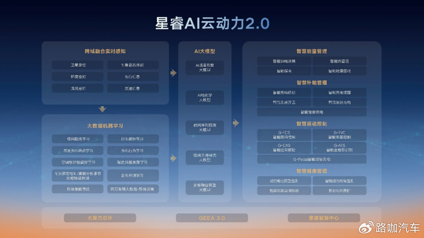 第二点,是能促进销量和强化用户口碑的关键点。吉利的模式是,因为自身近几年搭建了天地一体化的模式,目前已发射30颗低轨卫星,所以能随时了解车辆的行驶位置,也就能和车身姿态、交通信息等,预估和计算路况。再结合对司机驾驶习惯的学习,以及对车辆的限滑、过弯等等做出最可能精准的控制。