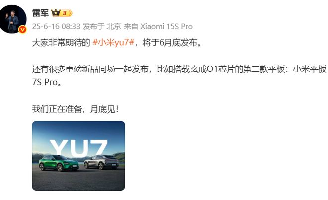 电动知家消息,6月16日周一早间,雷军正式官宣,小米YU7将于6月底上市。雷总也是够狠的,这都6月16日了,才宣布6月底上市,连个具体时间都没有,过几天再来一波,宣布具体时间,不得不佩服雷军的营销策划能力。 事实上,发布会至少提前一个月定档, 其实圈内的信息指向YU7早已定6月档26号。 小米YU7是小米汽车即将推出的首款SUV车型,定位为中大型豪华高性能SUV。五座布局,轴距3000mm(长4999mm × 宽1996mm × 高1600mm)。全系800V碳化硅平台:支持5.2C超充,10%-80%电量仅需12分钟,15分钟补能620km。 动力系统三个版本: 后驱标准版:单电机(235kW/528N·m),0-100km/h加速5.88秒,CLTC续航835km(96.3kWh磷酸铁锂电池) 四驱Pro版:双电机(370kW/690N·m),0-100km/h加速4.27秒,续航770km(96.3kWh电池) 四驱Max版:高性能双电机(508kW/866N·m),0-100km/h加速3.23秒,最高时速253km/h,续航760km(101.7kWh三元锂电池)。 智能科技配置方面, 智能驾驶:硬件:全系激光雷达(探测距离200米)+ 4D毫米波雷达 + 11摄像头(7颗防眩超透镜头)+ 12超声波雷达。芯片:NVIDIA DRIVE Thor(700 TOPS算力),支持高阶辅助驾驶智能座舱:天际屏全景显示:3块Mini LED屏组成1.1米超宽投影,支持SR场景渲染、盲区影像显示。后排6.88英寸可移动控制屏,支持车控、导航等功能。 小米YU7作为小米首款SUV,以800V高压平台+超快充+激光雷达全系标配为核心卖点,兼顾性能(3.23秒破百)、续航(835km)与智能体验(Thor芯片+全景座舱)。若定价25万起,有望重塑中高端纯电SUV市场格局,成为Model Y的强劲对手。  |