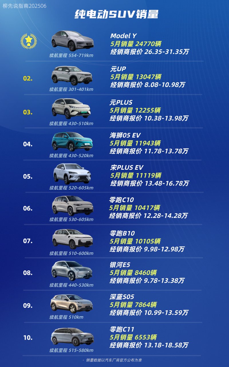 2025年6月,小米汽车正式发布了其首款纯电动SUV车型YU7,这款车型不仅标志着小米在电动汽车领域的重大突破,也预示着小米将为全球汽车市场带来新的活力和变革。YU7起售价定于23.35万元,这一价格点既保证了产品的中高端配置,又兼顾了广泛的消费者群体。在开售短短3分钟内,大定订单就突破了20万台,1小时内更是达到了惊人的28.9万台。 当前,纯电动SUV赛道的竞争异常激烈,主要玩家包括特斯拉、比亚迪、零跑以及吉利银河等。它们打造的纯电动SUV的价格主要集中在10-30万元区间,恰好覆盖了中国汽车消费最主流的市场。各品牌之间的竞争已从单纯的续航里程比拼,扩展到智能座舱、自动驾驶辅助、充电网络等全方位体验的较量。 纯电动SUV市场已经显现出明显的场景化细分趋势:针对年轻群体的运动型、面向家庭用户的大空间型、适合都市女性的精品型等细分品类正在形成。 国内纯电动SUV销量排名 榜单6-10名:零跑C10、零跑B10、银河E5、深蓝S05以及零跑C11。零跑旗下有好几款车上榜,其中排在第6位的零跑C10,在今年5月销量为10417辆,这是一款中型的SUV,有增程版本和纯电版本可选。采用800V高压碳化硅快充平台,充电30%-80%仅需16分钟。同时支持27项辅助驾驶功能。 2025年5月国内纯电动SUV销量1-5名:Model Y、元UP、元PLUS、海狮05 EV和宋PLUS EV。特斯拉Model Y稳居榜首,月销量为24770辆,已是全球最受欢迎的纯电动车型之一。品牌的知名度和影响力使得消费者在选择电动汽车时往往先想到特斯拉。 挑选纯电动SUV,除了在意品牌外,国内消费者往往更加关注车辆的外观设计、内饰空间以及智能驾驶辅助系统等方面。对于汽车的需求已不仅仅停留在基本的交通工具层面,更多的是追求个性化表达、舒适体验以及智能化服务。此外,产品差异化的重点将转向软件和生态。车载AI的能力、车机系统的应用多样性、智能家居的联动性等“软实力”也成为了消费者决策的重要依据。 可以预见,随着小米YU7的强势入局,纯电动SUV市场格局面临重构。业内人士指出,小米YU7之所以能够一炮而红,关键在于其精准把握了当前纯电动SUV消费者的核心需求,并在多个维度实现了突破性创新。其凭借强大的品牌影响力和超强的营销能力,有望在未来几年内迅速扩大市场份额,并与特斯拉、比亚迪等新能源汽车的强者形成有力竞争。 结语:在智能电动化这场马拉松中,暂时的领先者未必能笑到最后,唯有那些真正理解用户数字化生活方式,并能持续创造增量价值的企业,才能赢得终局胜利。 |