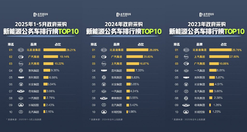 在过往的几年时间里,国内新能源汽车的发展可谓相当迅速,不仅产品迭代独步全球,而且在国内市场,新能源汽车的渗透率快速突破50%,国产新能源+特斯拉的组合,将一众传统合资品牌狠狠压制,很多合资品牌不得不通过持续降价来获得生存空间和发展机会。 不过,在新能源汽车发展的过程,我们还是看到了很多“恨电派”人士,他们对于新能源汽车的态度就是相当抵触,但是在历史的洪流面前,这种抵抗的态度本质上是没有意义的,只可能延缓新能源汽车“消灭”燃油车的速度,但是无法改变新能源汽车最终替代燃油车的命运。 所以有很多小伙伴就说了,虽然新能源汽车迟早要替代燃油车,但是自己换新能源汽车的时机,一定要到最后一刻,比如等到公务用车啥时候大量换成新能源汽车的时候,就是自己换新能源汽车的时候! 现在,这个“时候”已经来了! 日前太平洋汽车制作了2023年、2024年和2025年1—5月新能源公务车采购排行榜TOP10,数据显示,在采购的新能源公务用车中,比亚迪遥遥领先,比例分别达到了29.76%、26.09%和28.21%,而且在前三强品牌中,比亚迪是唯一一家民营汽车品牌,这其中的含金量,大家应该可以明白。 实际上,从去年开始,相关层面就连续印发了支持采购国产新能源汽车的相关文件和指导意见。今年1月3日,《政采网》就刊出了财政部办公厅《关于进一步明确新能源汽车政府采购比例要求的通知》,其中明确表示:采购人应当加强公务用车政府采购需求管理,充分了解新能源汽车的功能、性能等情况,结合实际使用需要,带头使用新能源汽车……新能源汽车可以满足实际使用需要的,年度公务用车采购总量中新能源汽车占比原则上不低于30%。其中,对于路线相对固定、使用场景单一、主要在城区行驶的机要通信等公务用车,原则上100%采购新能源汽车。采购车辆租赁服务的,应当优先租赁使用新能源汽车。 所以其实从今年开始,我们将在全国范围内,看到很多地方的公务用车,换成新能源汽车,而这些新能源汽车中,比亚迪的占比是最高的。这也算是相关采购部门对这个国内最早投身新能源汽车研发、生产,如今成长成为国内、乃至全球新能源汽车产销量最高的新能源汽车品牌的一种认可。而且我们也相信,相关层面在采购公务用车的时候,对车辆的可靠性、稳定性和经济性,应该也进行过评估,比亚迪的新能源车,符合公务用车的需求。 因此随着相关层面要求公务车尽可能采购新能源汽车,以及国产新能源汽车在公务车采购中扮演更重要的角色。未来一段时间,不仅马路上的新能源私家车会越来越多,就连公务用车,也将变成国产新能源汽车的“主场”,这对于“恨电派”的小伙伴们来说,无疑是非常破大防的变化。 当然了,可能更加“破防”的,就是拥有“恨电派”和“迪黑”双重身份的小伙伴了,因为从今年开始,越来越多的公务用车将新增或者换成新能源汽车,而从过去两年多的数据来看,比亚迪是新能源公务车采购比例最高的品牌。所以种种迹象都表明,国内汽车产业的新能源化,比亚迪的“巨头化”,恐怕都将成为不可逆的趋势 |