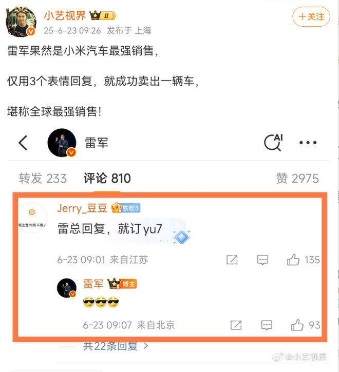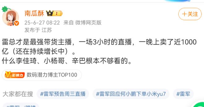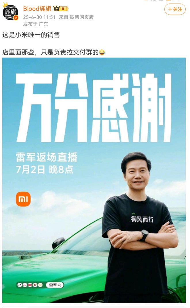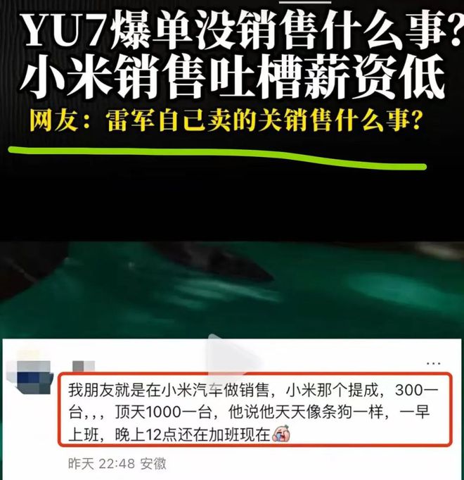 最近,小米YU7卖疯了,一小时大定28.9万台。另据汽车博主“车fans”消息,已确认小米上周新增锁单破28万。 有人可能要说了,这次小米销售躺赚了。因为雷军才是小米最大的“销售”,一场发布会就让半年销量完成了,交付时间都排到一年之后了。 甚至雷军只回复三个表情就卖出一台车; 网友直呼雷军是最强销售、是小米唯一的销售,门店里只是负责拉交付群的。 小米的销售们只要等订单上门,甚至此前有小米销售调侃店门口栓个哈士奇,都能干销售的活。 若雷军拿提成,能拿多少钱? 去年曾有汽车博主爆料称,小米直营店汽车销售底薪约为6000元,锁单加交付可提成800元。小米授权店则不太一样,汽车销售的底薪基本为4000元,2000元-3000元奖金与过程管理挂钩(如客户满意度等),锁单提成、交付提成分别在600元至800元、150元至300元之间。 另据车fans发布的“小米YU7 72小时新车上市一线快报”显示,均店新增锁单800-900台。如果按照每个门店10个销售来算,那每人平均也得80到90个订单。 有网友称,自己朋友是小米汽车销售,销售一台提成300元,最多1000元一台,认为小米汽车销售薪资低。 但有网友调侃称,“雷军自己卖的关销售什么事”。 假设按照每台车提成800元算,小米汽车销售这几天的每人平均收入6万到7万之间。但是,提成并不是一次性给的,通常锁单一部分,交付一部分。按照目前的交付速度,销售们应该短期只能拿到锁单提成。如果每个锁单都按400元来算,平均每个销售能赚3万多。这其实也是个不小的数字。 假设雷军卖一台车能拿800元提成,按照销售28万台计算,总提成就是280000×800=224000000元,也就是2.24亿元。 这个数字挺夸张的吧。要算销售额的话,一个小时28.9万个大定,每个定金5000元,光定金就有14亿多的收入了。 雷军实力远超头部带货主播 雷军的带货能力一点不输头部主播,先来看看几位头部主播过去单日最高带货成绩。 2023年双11预售首日,有媒体统计李佳琦当场直播的GMV约为95亿元;2024年,辛巴在10月19日的直播中单日销售额突破64亿元,第一场直播更是达到了51亿元;董宇辉在今年618大促首日的与辉同行直播间销售额为1.76亿元;而在2024年618首场直播中,小杨哥的带货金额也达到了1.1亿元。 假设雷军作为“带货主播”,以小米YU7入门版售价25万,小米YU7一小时大定28万台粗略计算,雷军整车销售额已超700亿。 对比李佳琦、辛巴、董宇辉、小杨哥单日最高带货额之和161.86亿元(李佳琦95亿+辛巴64亿+董宇辉1.76亿+小杨哥1.1亿=161.86亿),雷军的带货金额是他们之和的4.32倍。 所以有网友称雷军是最强带货主播,一晚上卖近1000亿一点不夸张。 以销售额做对比,雷军的带货成绩远超李佳琦、辛巴等头部主播,说雷军是小米最大的“销售”,看来实至名归了。 雷军个人在科技圈的极高影响力,小米品牌长期以来积累的庞大用户基础与良好口碑,以及小米YU7产品本身在性能、性价比等方面的优势,再加上发布会等营销活动的强力助推,多重因素共同作用,促成了这一情况。 据了解,蔚来、理想、小鹏汽车销售平均提成方面,蔚来汽车销售提成一般在1000-1500元/台左右,热门车型或特殊车型提成更高。理想汽车销售提成在800-1200元/台左右不等。小鹏汽车销售提成大概在600-1000元/台左右。 综合来看,小米汽车销售提成处于中等或略低水平。小米汽车销售的提成不算高,但雷军的影响力确实巨大,小米汽车大卖很大一部分原因是靠雷军个人魅力。 当然,汽车的客单价高,雷军很快又要直播了,如果他直播带货小米的其他产品,销售额又会是多少? |