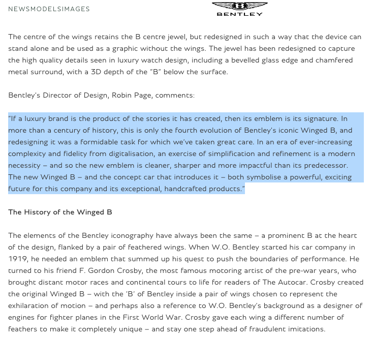 (转自:汽车之地) 7月1日,大众汽车集团旗下超豪华品牌宾利汽车正式官宣,全新宾利双翼徽章正式发布。据了解,新车标由现任设计总监Robin Page主导,呈现出更具现代感与前卫精神的设计语言。新车标依然采用标志性的双翼“B”字母元素设计,但在细节上进行了诸多的调整,整体变化非常明显,视觉效果上更为锐利和张扬。 对比新旧车标来看,新车标采用更简洁的设计风格,取消了旧车标柔和的立体双翼设计,取而代之的是更平面化的处理方式,中央的"B"字设计更立体,塑造出更简洁流畅的轮廓。原本旧车标左右不对称的羽毛也被简化掉,从原来柔和的羽毛变为几何切割锐利线条。另外,字母“B”下方的羽毛也被直接去除掉,改为一条描边线条处理,这样的设计也令车标造型更显简洁和利落。 从新车标来看,本次宾利汽车新标识也是采用当下汽车行业车标的主流趋势——扁平化设计。在此之前,包括大众、宝马、日产、马自达、斯柯达、起亚、标致、雪铁龙、雷诺、通用、奥迪等跨国车企以及长安、吉利、比亚迪、一汽奔腾等自主品牌均更新也在最近几年更新了品牌LOGO,且几乎全部是采用扁平化设计风格。宾利汽车设计总监Robin Page表示:“宾利汽车标志性的双翼‘B’字徽标经历了四次演变,重新设计这一徽标是一项非常有挑战性的任务,所以这一项工作十分谨慎。在数字化带来的复杂性和精细度日益提升的今天,化繁为简、精益求精是现代社会的必需品。因此,设计上和视觉上,新车标比旧车标更为简洁、更清晰、更具影响力,视觉上看起来更干净。” 宾利(Bentley)是大众汽车集团旗下超豪华品牌,由英国人华特·欧文·宾利 (Walter Owen Bentley)创立,以“要造一台快的车,好的车,同级别中最出类拔萃的车”的造车理念于1919年7月正式创立宾利汽车公司,公司以他的姓氏命名,总部位于英国克鲁,专注于生产高性能运动车型。后因面临经营困境,最早于1931年被劳斯莱斯收购,此后劳斯莱斯也因经营不善,于1997年被宝马收购,而宾利则被大众集团收购,成为大众汽车集团旗下超豪华品牌。 回顾宾利汽车的车标发展历程,历史上,宾利汽车已历经四次更换车标,初代宾利双翼徽标由F. Gordon Crosby于1919年设计,此后分别在1931年、20世纪90年代及2002年进行了更新。而本次发布的是自1919年品牌创立以来,宾利汽车历史上的第五次更换车标,也是宾利汽车百年来最具突破性的设计变革,标志着品牌进入数字化时代的新篇章。 由下至上分别为第一代至第五代宾利汽车的车标 作为大众汽车集团旗下超豪华品牌,近几年,伴随着全球车市竞争加剧以及消费者购车偏好的转变等因素,即便宾利背靠着大众集团也难以独善其身。数据显示,2024年宾利汽车全球销量为10643辆,与2023年的13560辆相比下滑22%。营业利润方面,2019年宾利实现扭亏为盈,营业利润为6500万欧元,到2021年这一数据增至3.89亿欧元。到了2023年宾利营业利润进一步升至5.89亿欧元,同比下降17%,而2024年,宾利营收为26.48亿欧元,同比下滑10%;营业利润为3.73亿欧元,同比下滑37%。 目前,宾利汽车在售车型包括飞驰 、添越 、欧陆GT以及欧陆GT敞篷版系列。按照计划,本次发布的新车标首搭的概念车将在7月8日亮相。 |