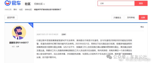 近日,多位极氪007GT 车主向车友公社反映,车辆提车后不久便出现智能驾驶系统(NZP)故障,且极氪方面无法明确故障原因,仅以更换核心部件作为解决方案;同时,售后服务存在流程不规范、回应敷衍等问题,引发车主群体对产品质量与品牌信誉的质疑。 NZP 系统故障,车主遭遇 "换件式维修" 困局 2025 年 5 月,浙江杭州沈先生(化名)花费 20 万元购入极氪 007GT。提车初期,良好的驾驶感受与舒适度,让沈先生对这款车颇为满意。然而,好景不长,6 月的一次驾驶中,当他试图激活车辆的 NZP 辅助驾驶系统时,车机屏幕突然提示 “LCC 无法激活,车道条件不满足”,多次尝试均以失败告终。据沈先生介绍,“这不是第一次用 NZP,之前同样的道路条件每次激活都很顺畅。” 极氪官方网站显示,NZP 系统基于高精地图,能够实现自主上下高速匝道、车道变化、主动巡航等功能,自 2023 年 1 月正式推出以来,与小鹏 XNGP、特斯拉 FSD 等同属主流辅助驾驶系统,也是沈先生选择极氪 007GT 的重要原因之一。 故障发生后,沈先生迅速将车送至极氪家检修。工作人员检测后告知,问题源于激光雷达出现故障码,但对于具体原因,却表示“无法查明”。沈先生随后联系极氪客服,得到的回复同样模糊,未能明确故障产生的根源。由于原因不明,车辆无法进行针对性维修,只能更换激光雷达元件。“刚买一个月的新车就要换核心部件,换谁都很难接受。” 沈先生无奈地说。 随着与其他极氪车主交流的深入,沈先生发现自己的遭遇并非个例。“不少车友都反映遇到过 NZP 突然无法使用的情况,出现问题的时间从提车后一个月到数个月不等,像是有潜伏期。” 这不禁让他怀疑,该故障可能是极氪 007GT 存在的共性问题。在车质网等第三方投诉平台上,已有多位车主反馈类似问题,如 “车辆激光雷达出现无法识别车道线,车辆无法使用 NZP 和 LCC,变道时打开转向灯,变道完成后转向灯无法自动熄灭” 等。 多地车主投诉极氪售后: 故障检测报告缺失,服务流程引质疑 无独有偶,另一位车主在易车社区分享,行驶过程中发现极氪智能驾驶NZP 无法使用,渲染图也不再显示车道线,且与车道线识别相关的功能均无法使用。前往极氪家检测后,被告知是激光雷达故障,需要整体更换激光雷达、激光雷达线束及雷达罩,但工作人员无法提供故障检测报告。 在售后方面,极氪也饱受诟病。7 月 1 日,东莞的一位极氪 007GT 车主遭遇车窗自动升降异常,在大雨中车辆驾驶位和中控屏幕被打湿。前往极氪家南城街道官方售后点检查后,工作人员未出示环车检查单、盖有公章的故障维修单和新能源车后台数据,也未明确告知车窗自动升降的原因,仅称 “因为车钥匙放在车内,所以与手机 app 操作有冲突”,车主质疑极氪在该技术方面存在漏洞。7 月 2 日,车主致电极氪 400 官网反映情况,希望售后店出具相关法律效应的文件,但厂家并未协助消费者督促 4S 店,也未介入督办。 销量下滑叠加合并退市,极氪问题重重 面对诸多问题,极氪的销量也受到一定影响。7月初,极氪科技集团发布最新销量数据:2025年6月,极氪品牌交付新车16702台,同比下降近17%。相比上个月,其销量则下滑11.66%。显然,2025年6月份,极氪品牌的单月销量呈现出同比、环比双双下滑的态势。而在 7 月15 日,吉利控股集团宣布旗下吉利汽车与极氪正式签署合并协议,吉利汽车将收购其尚未持有的全部极氪股份,极氪股东可选择以现金或置换吉利汽车股份作为对价,合并完成后,极氪将成为吉利汽车的全资附属公司,并从纽交所退市。此次合并旨在强化吉利汽车在智能新能源汽车领域的全球竞争力和成长性,但极氪当前面临的产品质量与售后问题,无疑给合并后的发展增添了不确定性。 截至发稿,沈先生等车主尚未收到极氪方面关于故障原因的明确答复,车辆维修方案仍停留在“更换激光雷达元件” 阶段。对于极氪而言,如何妥善解决这些问题,重拾消费者信任,将是其在后续发展中亟待攻克的难题。毕竟,在竞争激烈的新能源汽车市场,产品质量与售后服务,始终是赢得消费者青睐的关键所在。  |