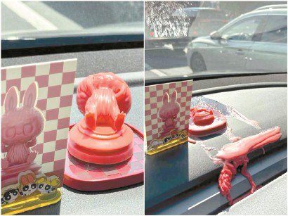 本文转自:解放日报 “Labubu融化惨变Lababa” 烈日暴晒下,车内物品有隐患 任翀 网友展示被晒化的香薰蜡烛。 社交媒体截图 最近,“Labubu车内融化惨变Lababa”的图片在社交平台火了——有消费者晒出图片表示,私家车里放着Labubu造型的香薰蜡烛,经过烈日暴晒后变得面目全非。不少网友跟帖表示,不仅香薰蜡烛会变形,其他塑胶摆件也可能因为阳光照射而走样。 随着大暑节气到来,全国大部分地区已经进入一年中最热的时节。比起“照顾”好车内的摆件,车主们更要关注的是那些看似安全的寻常物件。因为在烈日暴晒及环境温度升高的条件下,它们很可能变得非常危险。 首先是玻璃制品或与玻璃类似的物品。比如车头悬挂的玻璃或水晶的挂饰,玻璃瓶装的车载香水,随手放在仪表盘上的老花镜等。在阳光照射下,玻璃制品或相关物品很可能产生“放大镜效应”。它们聚焦阳光,使车内局部温度急剧升高,进而点燃纸巾、座套等车内易燃物,引发火灾。 其中,车主尤其要注意车载香水的安全风险。因为绝大多数车载香水含有酒精。酒精属于易燃物质,一旦遇到明火或高温,很可能燃烧,危险系数显著增加。 容易忽略的还有透明的饮料瓶。不论是玻璃瓶还是塑料瓶,如果在车内的位置被阳光直射且角度合适,也可能变成凸透镜,因聚焦光线而带来起火隐患。消防部门曾进行过实验揭示这一风险:在夏日阳光照射下,密闭的车内环境温度很快就超过60℃,当阳光经过瓶装水折射聚焦后,温度可能超过120℃;如果旁边正好有香水、纸巾、充电宝等易燃易爆物品,很可能引发意外。 车内使用打火机也要注意安全。打火机内的液体主要是丁烷,丁烷极易受热膨胀,导致打火机外壳破裂,引发爆炸。不少车主有随手将打火机放在仪表盘上的习惯,这无疑是埋下“定时炸弹”。 在车内使用充电宝要注意避开阳光直射。锂电池组是充电宝的主要部件,锂电池对温度非常敏感,锂离子在高温环境下变得非常活跃,容易使充电宝升温,严重时还会出现鼓包、漏液等,甚至引发自燃或爆炸。尤其是一些质量不达标的劣质充电宝,其内部电路保护措施不完善,在烈日暴晒后的车内高温环境中,风险大大增加。 鉴于此,如果要在车内使用充电宝充电,务必避开阳光;即便不使用,也要避免将充电宝存放在阳光直射处;若车内无人,应尽量把充电宝带走。 总之,很多车内看似平常的物件经过阳光暴晒,都可能变成潜在的危险品。为了自身和车辆安全,车主不妨花几分钟时间检查一下车内,将相关物品妥善存放,避免因小失大。 本报记者 任翀  |