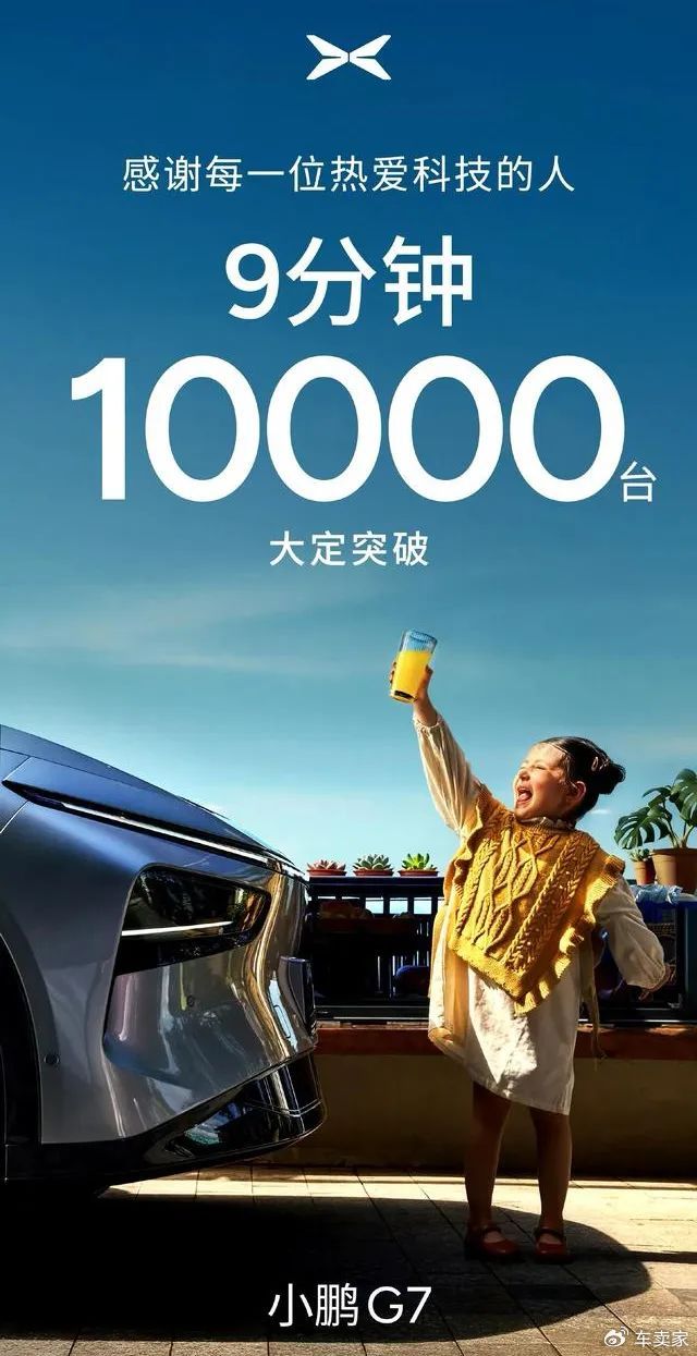 小鹏汽车宣称小鹏G7(配置|询价)九分钟大定突破10000台,这个车卖家也非常想看看前三个月小鹏G7销量到底如何!