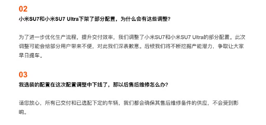 (来源:车联新生态) 7月25日,小米汽车发布答网友问。内容中,官方对近期小米SU7和小米SU7 Ultra下架部分配置一事进行了回应称,做出这样调整的原因是为了进一步优化生产流程,提升交付效率。 与此同时,官方还表示此次调整可能会给部分用户带来不便,对此深表歉意。后续将不断挖掘产能潜力,争取让大家早日提车。对于选装的配置在这次配置调整中下线后续的售后维修问题,小米方面表示,所有已交付和已选配下定的车辆,都会确保其售后维修备件的供应,不会受到影响。 据官方此前发布的宣传内容显示,在8月1日起,将下架小米 SU7 和小米 SU7 Ultra 部分配置。例如熔岩橙、寒武岩灰车漆下架、曜石黑 / 银河灰内饰下架、20 英寸五辐花瓣轮毂下架等。 小米SU7作为小米汽车旗下首款车型,在去年3月28日上市,新车定位纯电轿车,共推出标准版,Pro版3款车型,其中标准版,Pro版、Max版三款车型,售价分别为21.59万元、24.59万元,29.99万元。值得一提的是,新车一上市就火爆市场。官方数据显示:去年小米SU7交付汽车136854辆。今年最新6月小米SU7销量为23225辆,今年上半年累计销量为155692辆。 当然,官方做出下架SU7 和小米 SU7 Ultra 部分配置与其产能紧张不无关系。值得一提的是,除了小米 SU7爆火外,官方在上个月26日,上市了第二款车型小米YU7同样也火爆市场。新车共推出三款车型,售价分别为25.35万元、27.99万元、32.99万元。新车上市的火爆程度超过了此前的小米SU7,官方消息显示:上市3分钟,小米YU7大定破20万台。1小时,大定破28.9万台。开售18小时,小米YU7锁单量突破24万台。对于小米YU7上市后的成绩,小米创始人雷军还曾发文进行感谢,表示小米YU7订单远超了最乐观的预期,但绝不会因此而沾沾自喜,更不会因此而骄傲自满。 不难看出 ,摆在小米汽车眼前的不是销量问题,而是产能问题。目前,小米汽车主要产能还是来自于小米一期工厂。据了解,该工厂的产能为15万辆。此前有报道称小米二期扩建项目已经投入使用,在7月全面启动,二期工厂产能为15万辆。不过,从小米SU7及YU7的订单量来看,即便两个工厂将产能快速拉满,总的年产能只有30万辆左右,还不能完全解决目前小米汽车的产能问题。 据小米官方APP最新显示,现在下单预订小米SU7标准版车型,最快交付时间为38周-41周。下单SU7 Pro,交付时间为36周-39周。下单SU7 Max车型,交付时间为33周-36周。如果是下单小米YU7标准版车型,交付时间为57周-60周。下单YU7 Pro,交付时间为49周-52周。下单YU7 Max车型,交付时间为41周-44周。从官方的交付时间来看,最早的交付时间都需要半年以上。 对于交付这一块,官方曾表示,小米汽车App上显示的小米YU7预计交付时间为预估交付时间参考,随着产线磨合提效、产能挖潜爬坡,实际交付时间也可能会有动态变化。虽然,官方也在做一系列的调整,来进一步的优化生产流程,但想在短期内缓解订单积压的问题还是比较难。 |