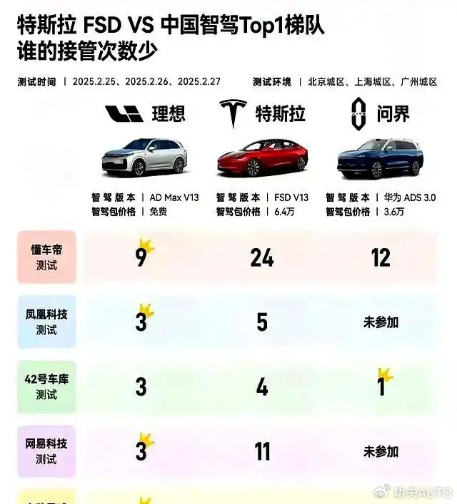最近,懂车帝与央视联合做的一档36款智驾车型测试的节目被持续顶上了热搜。 原因很简单,这次的结果太令人“意外”了。虽然懂车帝一直强调,这是一档辅助驾驶科普节目,主要是提醒大家正确认识辅助驾驶的相关功能和安全边界,并没有做任何的官方排名。但“贴心”的媒体看完节目,很自觉地“补上”了排名。 然后最具争议的事情出现了,特斯拉两款车包揽了“冠亚军”,蓝山排在了第三,然后才是号称辅助驾驶“第一梯队”的小鹏与问界。 最开心的莫过于马斯克和特斯拉粉丝了,被压制了几年,这波在各大论坛“火力全开”,把曾经拉踩过自己的品牌一一揪出来群嘲。 要我说,冤冤相报何时了,这波“崛起”的特粉,后面大概率要被嘲回去的。其实盘一盘前因后果,得出这样的结论并不难。 (1)特粉“过年”,自上而下 这一波特斯拉的开心是自上而下的,测试结果发出后,连特斯拉老总马斯克都被“惊动”了,专门发了推特评价这件事。 老马表示,由于国内的法律禁止数据出境,特斯拉是没有本地训练数据的。这种情况下在中国能取得最高成绩,还是值得骄傲的。话说回来,哪怕懂车帝再怎么解释没有排名,似乎不具备说服力,起码老马都是相信这个排名存在的。 然后老马还做了补充,特斯拉正在添加相应的训练数据,以实现更好的效果云云。意思再明确不过了,FSD系统戴着镣铐跳舞,依然轻松赢得了这场比赛,你就说我家特斯拉牛不牛? 然后是特斯拉副总裁陶琳也“复活”了,就是之前说要教育中国消费者的那一位。她表示,马斯克十几年就提出要开发比人类驾驶安全10倍的辅助小时,特斯拉已经超越这一目标,是不是遥遥领先? 然后强调,我们特斯拉不关注排名,因为排名只是相对的、暂时的,但安全要求没有上限,这格局确实要得。 最“扬眉吐气”的当数特斯拉车主,在各大论坛抢占舆论高地,表示特斯拉FSD在“闭卷考试”中遥遥领先,“电车只有特斯拉,手机只有苹果,超市只去山姆”,“n年不升级的特斯拉依然是天花板”云云,全出来了。 当然还有各方的“佐证”,比如北京和上海人民最爱买特斯拉Model Y(配置|询价),中汽协的领导呼吁要正视与特斯拉的差距,北京国企女骨干锐评小米YU7操控与特斯拉差距巨大等等。 总之,这一轮特粉真的是“过年”了。以往的测试,特斯拉不是在垫底就是在垫底的路上。这一波摇身一变“翻身做主”,粉丝终于找回了曾经“碾压全世界”的感觉。 至少在功夫汽车印象中,也就2021年左右的时候有过这种盛况。当时特斯拉在大卖的情况下坚持主动降价,一下子击破了舆论防线。现如今的表现,真有点“重回巅峰”的感觉。 (2)碾压不了一点,特斯拉的致命死穴 特粉列举了特斯拉的诸多优点,比如“真实续航”表现行业一线,操控表现一流,再加上辅助驾驶也是天花板。这样的特斯拉,怎么就不是行业第一了? 但个人看来,这样的结论其实是很难站住脚的。 首先说这次测试,特斯拉确实拿了第一,甭管懂车帝如何解释没有官方排名,这是不争的事实。但这个第一的背后,其实是标准并不统一。 比如每家车企的跟车距离和速度并不一样,在触发刹停动作时,特斯拉的车速在115km/h左右,跟车距离115米左右。其他家车速120km/h+,跟车距离70米左右。有测试车决定自己变道过去,司机强行拉回方向盘。 这里面其实涉及一个“规则理解”的问题,比如国产车开到120km/h+其实是超速了,但国内真的很多人就是开这个速度,略微超速似乎是“常态”,因为你不超在最左侧车道是待不住的。 再就是跟车距离,理论上跟车距离115米自然安全,但现实生活中也确实容易被人“加塞”,这一点大家一试便知。 很显然,国内车企的辅助驾驶,很多就是根据“现实情况”来的,而特斯拉明显要“守规矩”一些。大家学的数据模型并不一样,表现自然也不一样。 特斯拉没怎么学国内的数据,导致之前市区驾驶出了不少洋相,尤其是“红绿灯劫数”。到了路规相对简单的高速,理想场景下,反而成了优势。 再回到产品上,特斯拉的问题可能更多。比如20多万的Model 3配的是62.5度的电池包,至今没有外放电,马上要上市的Model Y L就是现款车型的简单拉长。至于操控,很大程度还是牺牲舒适性换来的。 说白了,特斯拉的死穴还是产品,包括这个新六座车出来,很大概率也不是什么“六边形产品”,这不是一两次测试能改变的。 (3)小心反转,别被当枪 而且以现在的舆论玩法,千万别轻易站队。比如这一次特粉把懂车帝吹上天了,说怎么公正云云。占据了推广辅助驾驶、又强调安全性的“大义”,还拉上官方机构背书,确实抢占了舆论高地。 那万一明天就反转了,特粉又如何自洽呢? 这种可能性是极大的,比如前阵子懂车帝就组织了一次实地测评,号称要为消费者“探底”。结果特斯拉频频失误,不仅有闯红灯、车道识别出错这种经典问题,应对加塞反应也非常迟缓,接管次数遥遥领先。话说回来,跟这次的测试好像就隔了半年不到? 再往前一点,去年夏天懂车帝的AEB测试,特斯拉也几乎垫底,仅高于小米。前年的冬季续航测试,特斯拉Model Y的续航达成率只有39.68%,再次垫底。只是那一次是几大国产品牌在互掐,没人关注罢了。 说白了,特斯拉基本就是“工具人”的角色。需要吹捧车企的时候,就踩特斯拉;需要踩车企的时候,就抬高特斯拉。只是这一次个人觉得是后者,现在辅助驾驶这个概念太热了,需