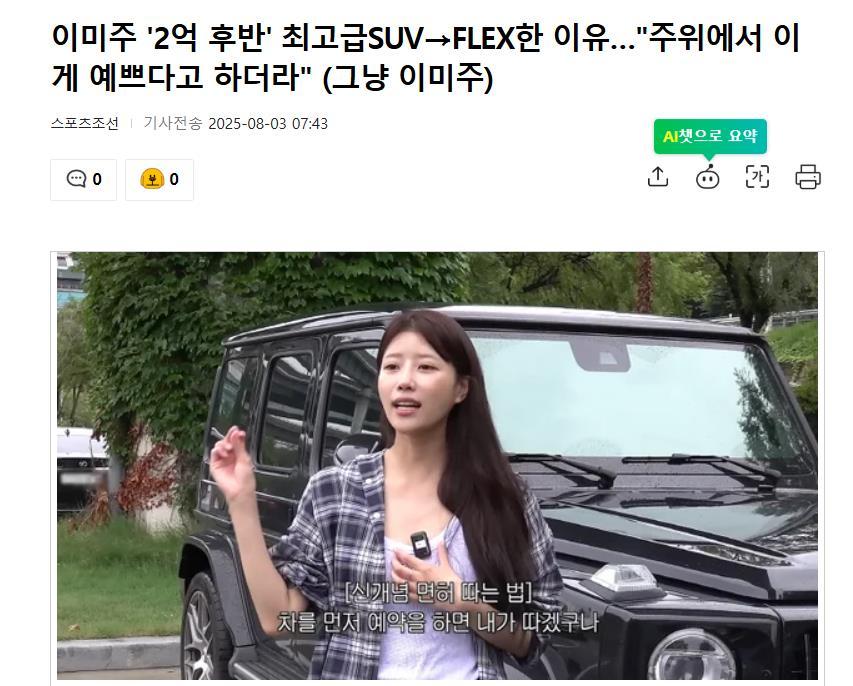 韩国女团Lovelyz成员李美珠最近在YouTube上自曝考驾照的“钞能力”操作,直接把网友看傻眼——别人考驾照是为了开车,她考驾照是因为先买了车! 据韩国媒体8月3日报道,李美珠在个人频道晒出她的黑色奔驰G63 AMG,也就是车圈顶流“大G”。这辆售价2亿韩元(约合14.4万美元)的豪车,居然是她三年前为了“激励自己考驾照”提前订下的“动力道具”。她坦言:“考驾照太麻烦了,我就想,如果先订车,肯定更有动力去考。” 这波反向操作立刻引发热议。有网友调侃:“这就是有钱人的思维吗?我考驾照的动力是共享单车月卡快到期了。”更绝的是,李美珠自曝选车理由极其随性——不懂车,纯靠“问了一圈人说这车好看”,就果断入手。而拥有“大G”三年,她只开了1.5万公里,理由也相当凡尔赛:“平时喝酒没法开车,而且我也不爱跑远路。” 评论区瞬间分成两派。支持派认为“目标管理没毛病”,毕竟她真靠这方法拿下驾照;吐槽派则计算“考个驾照成本14万美元,不愧是明星经济学”。还有人发现华点:“三年才开这么点,这车怕是长期在车库吃灰吧?” 不过,李美珠的“壕无人性”操作倒也不是孤例。此前韩国演员金宇彬也曾为拍戏先考直升机驾照,但像这样“买车逼考证”的硬核操作,确实刷新了大众认知。有业内人士分析,明星高调晒豪车容易引发争议,但李美珠的坦诚反而消解了炫富感,“把荒诞行为讲成段子,也是种情商”。 说到底,这辆“史上最贵考驾照催化剂”背后,与其说是炫富,不如说是现代人对抗拖延症的极端案例——只不过普通人的奖励是奶茶,她的奖励是奔驰。下次谁再说“没动力学习”,建议先看看银行卡余额,可能瞬间就清醒了。 |