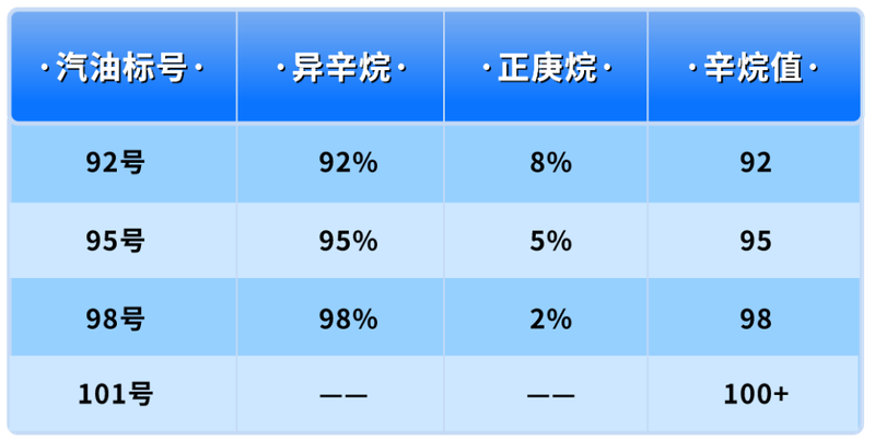 汽油标号代表汽油燃烧时的抗爆性,而油品的抗爆性是用辛烷值来表现辛烷值越高抗爆性能越高。比如,
