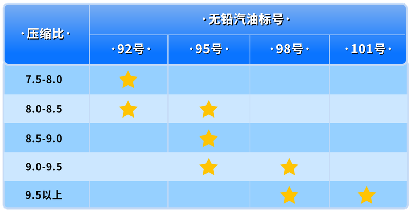 并不是标号越高越好哦!选择汽油,要根据发动机压缩比,压缩比大发动机,需要抗爆性好的汽油,否则,燃烧不充分,油气混合气体自己就被燃爆了,会产生爆震从而影响动力。因此,要根据压缩比区间选择油号。